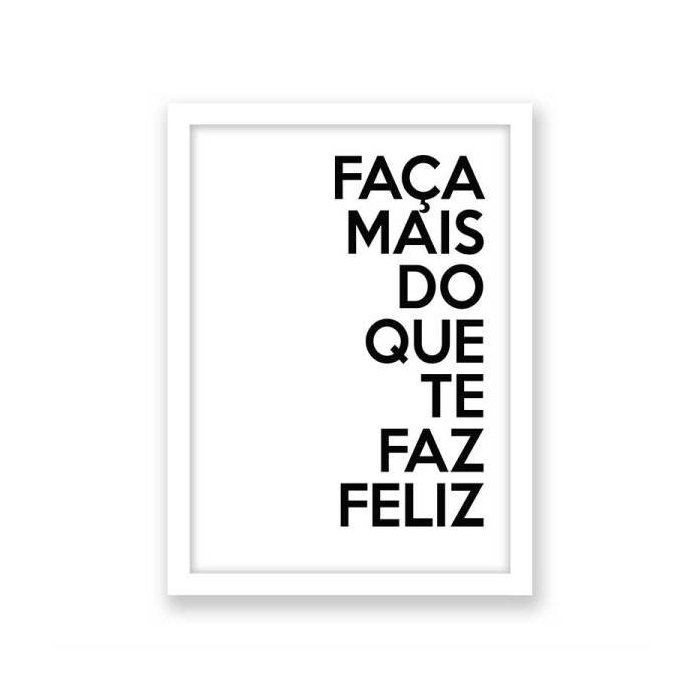 Quadro Frase Faça Mais do Que Te Faz Feliz - A2-594X420mm - Clean 2cm-Branca