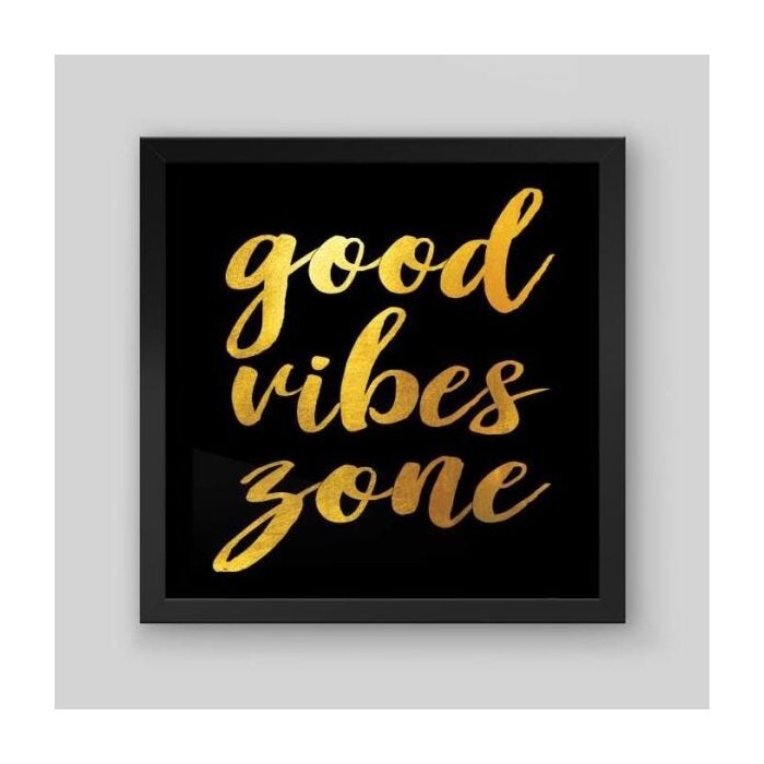 Quadro Frase Good Vibes Zone I - 30x30cm - Moldura Padrão Preto