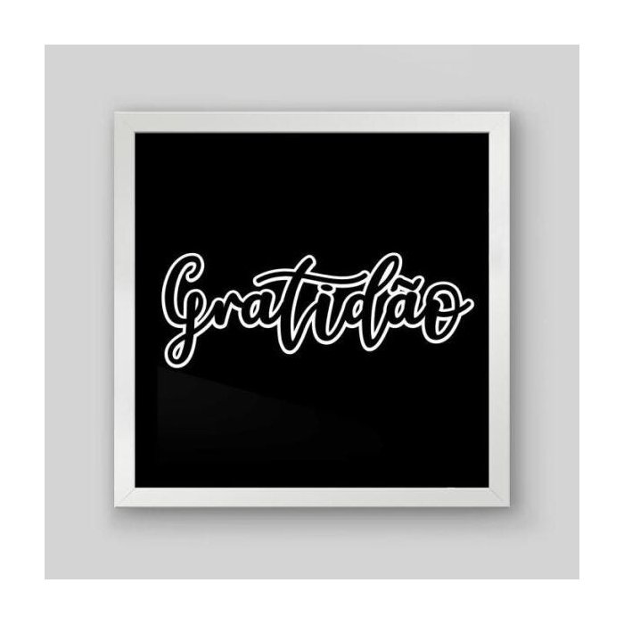 Quadro Frase Gratidão - 30x30cm - Moldura Padrão Branco