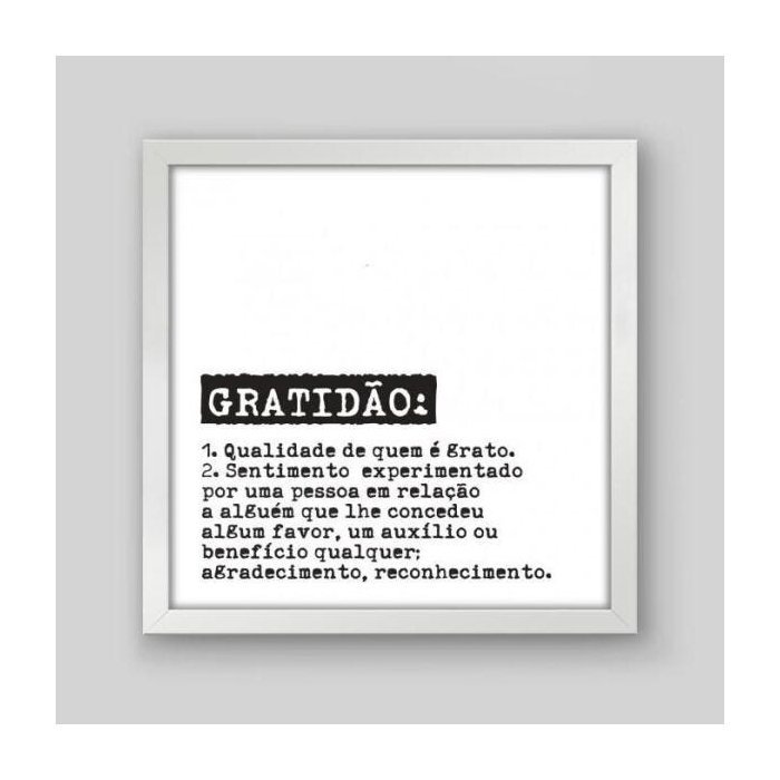 Quadro Frase Gratidão Significado - 30x30cm - Moldura Padrão Branco