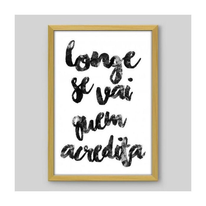 Quadro Frase Longe Se Vai Quem Acredita - 60x40cm - Moldura Padrão Madeira