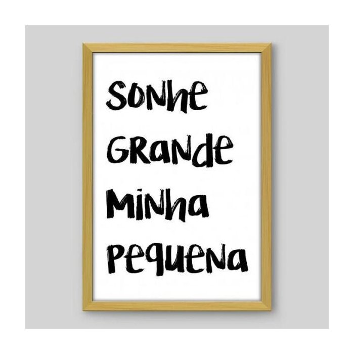 Quadro Frase Sonhe Grande Pequena - 30x20cm - Moldura Caixa Madeira