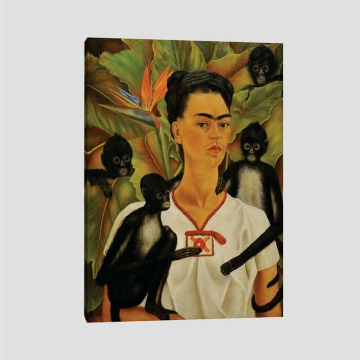 Quadro Frida Kahlo Autorretrato Com Macacos Tela No Chassi 45X30Cm