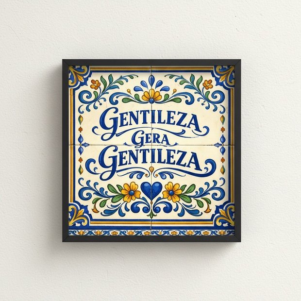 Quadro Gentileza Gera Gentileza 33x33cm Mold Preta Vidro preta