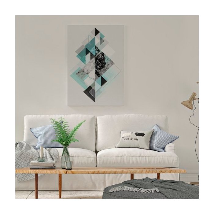 Quadro Geométrico Azul e Branco - Tela Única - 200 x 120 cm - Branca