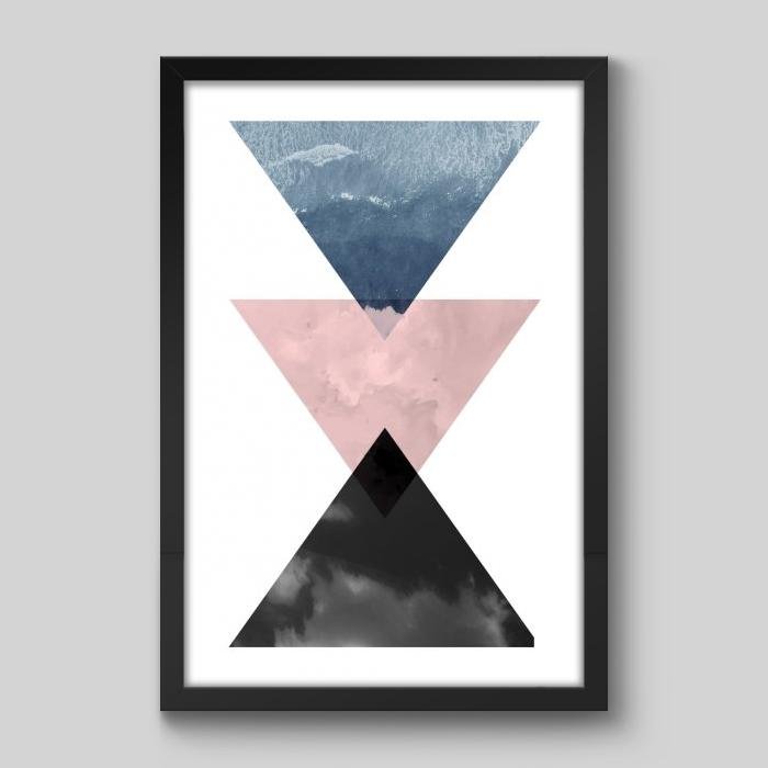 Quadro Geométrico Triângulo Triplo - 45x30cm - Moldura Padrão Preto