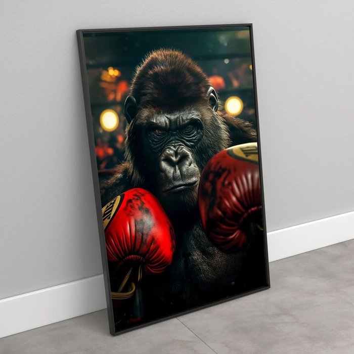 Quadro Gorila do Boxe - 70x50cm:moldura Branca