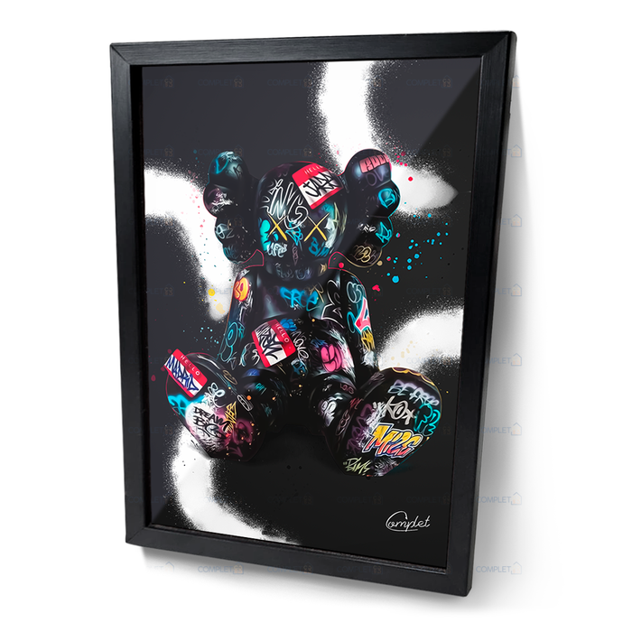 Quadro Grafite Boneco Kawns Preto Moldura e Vidro