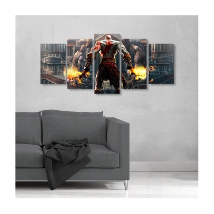Quadro Grande 5 peças God of War II Kratos