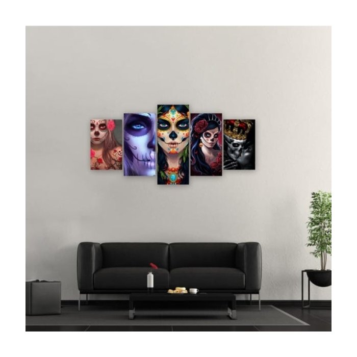 Quadro Grande 5 peças Palhaça Mexicana Tatuagem
