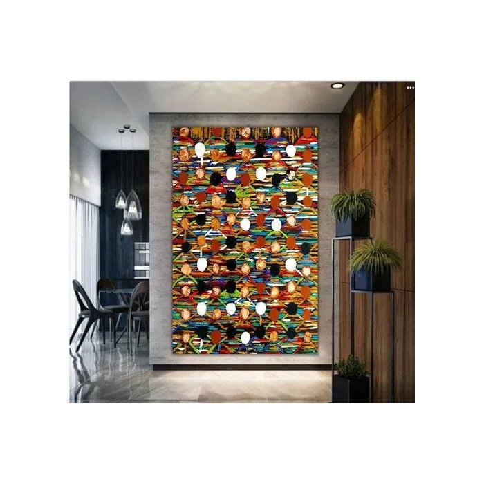 Quadro Grande Moderno Pintado A Mão Abstrato Na Vertical