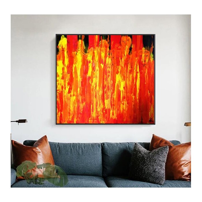 Quadro Grande Pintado a Mão para Decoração Reflexão Crítica sobre Acidente amarelo , vermelho