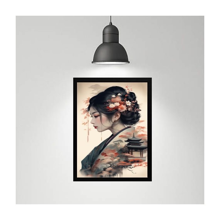 Quadro Gueixa Paisagem Japonesa 45x34cm:madeira Preta
