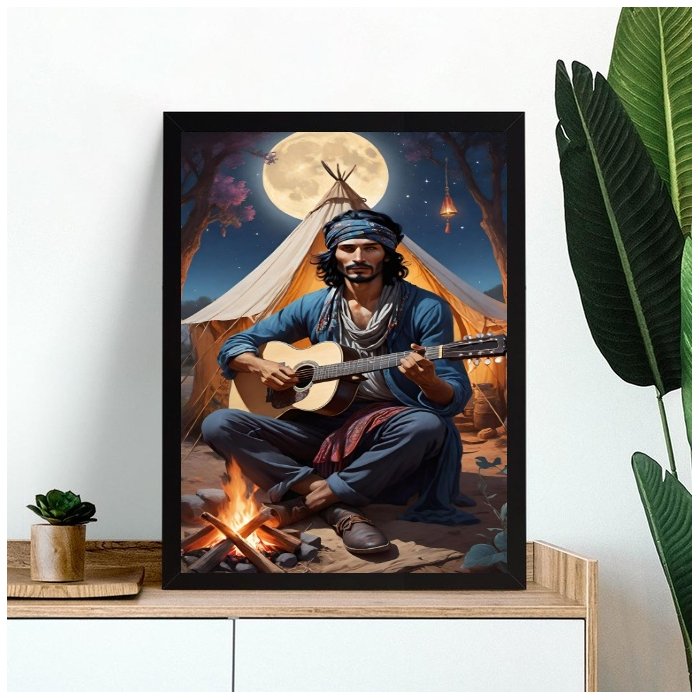 Quadro Homem Cigano Cartas Tarot 33x24cm - com Vidro:moldura Branca