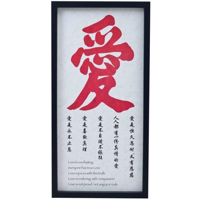 Quadro decorativo ideograma chinês, poema o amor é eterno. Material: Moldura de alta qualidade, confeccionada em madeira com perfeito acabamento. Gravura importada texturizada, impressa em papel de alta qualidade. Fundo MDF. Especificações Técnicas: Tamanho Exato do Quadro (LxA): 37x74 cm. Dimensão da Moldura (LxA): 2,5x2,5cm. Peso: 3 Kg. Cor: Preto. Vidro: Não. Referência: DP025. Limpeza: Utilizar pano seco. Garantia: 3 meses contra defeitos de fabricação.