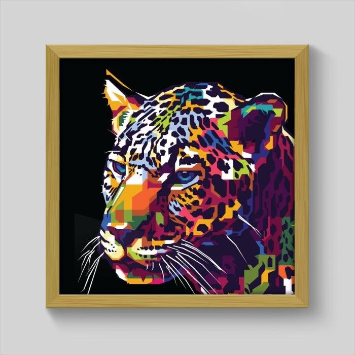 Quadro Ilustração Colorida Onça Pintada - 40x40cm - Moldura Padrão Madeira