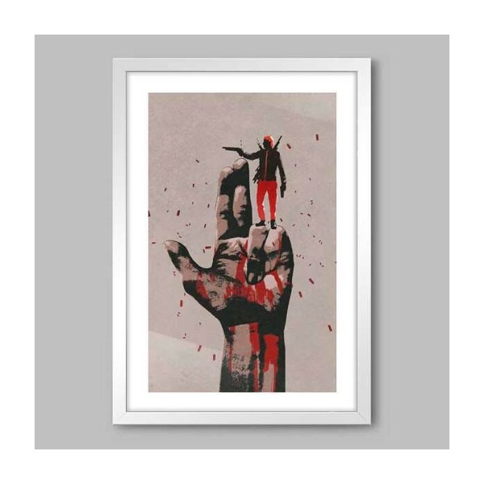 Quadro Ilustração Dedos Ensanguentado - 60x40cm - Moldura Caixa Branco