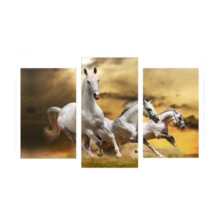 Quadro Impressão Digital 70x120 conjunto de 3 peças – cavalos brancos Atelier Valverde