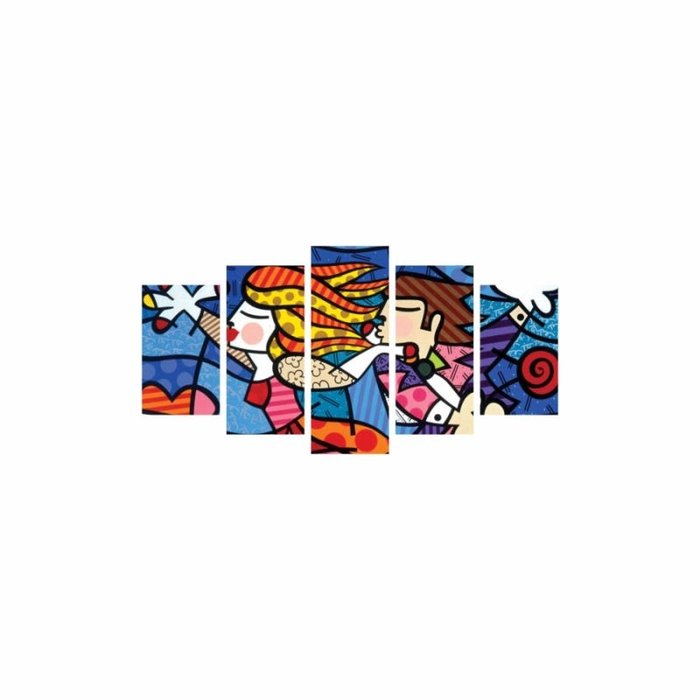 Quadro Impresso Romero Britto Para Pendurar 5 Telas 160x80