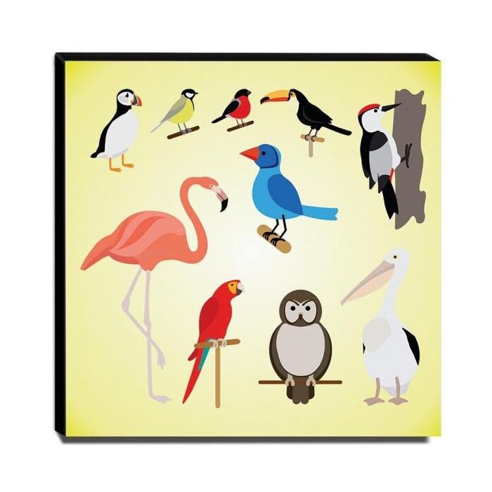 Quadro Infantil Animais Pássaros Canvas 30x30cm-INF413 Colorido