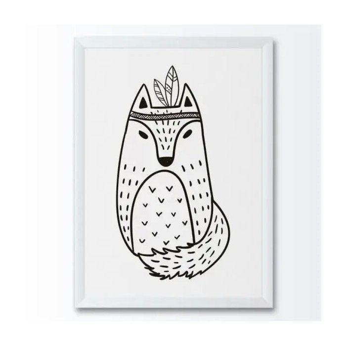 Quadro infantil animal lobo desenho p&b,quadro decorativo, quadros sala, quadro, quadros para quarto, quarto bebe, quarto infantil, cozinha, sala, quadro, decoração, decoração infantil, maternidade, menina, menino, bebê, criança, moldura, pôster, placa, MDF, Conspecto.