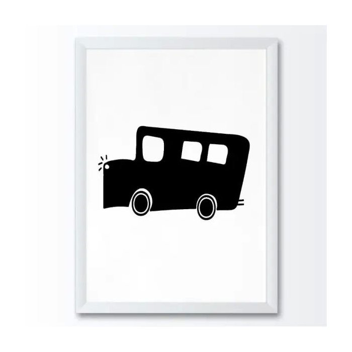 Quadro decorativo com moldura, Quadro infantil desenho carro preto.