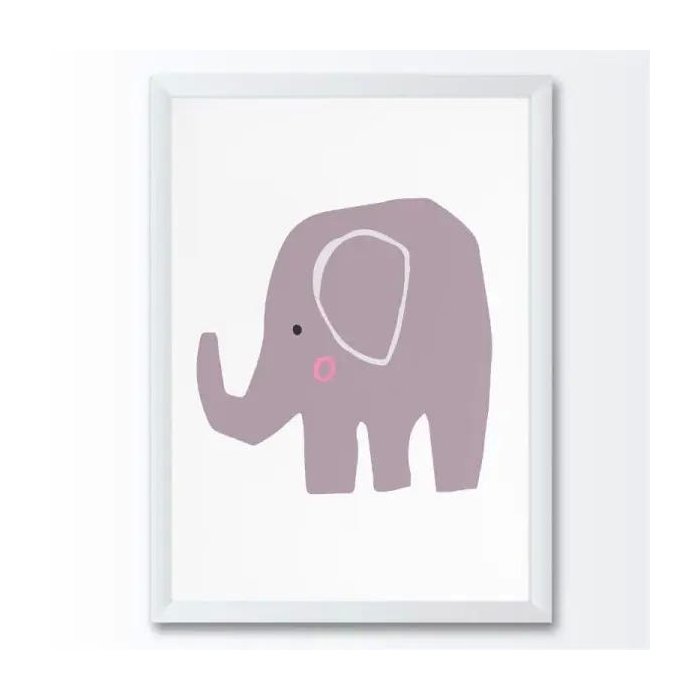 Quadro decorativo com moldura laqueada, Quadro infantil desenho elefante cinza.
