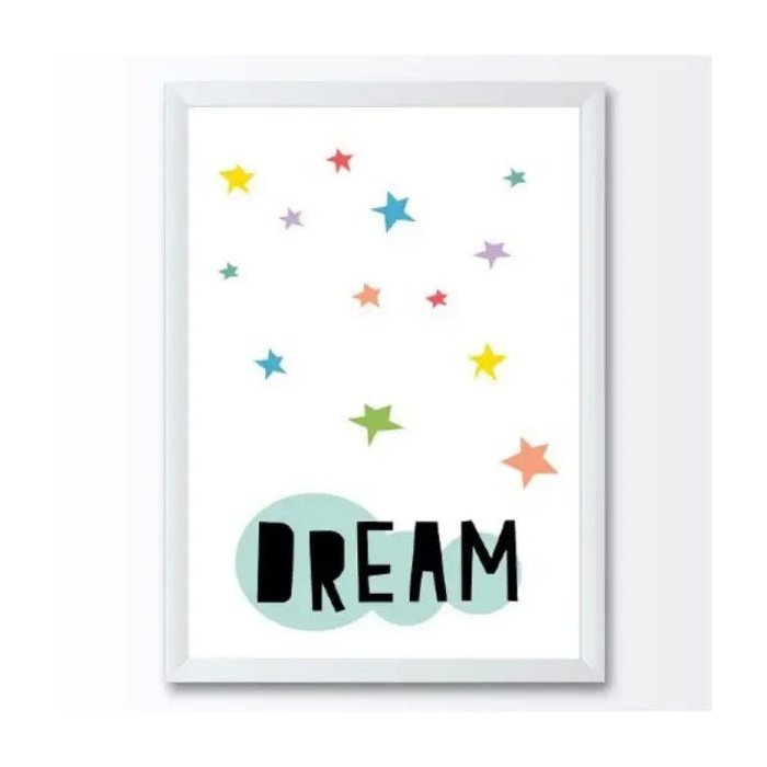 Quadro decorativo com moldura laqueada, Quadro infantil Estrelinhas Sonhar Colorido.