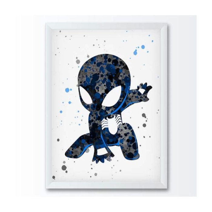 Quadro decorativo com moldura laqueada, Quadro infantil Homem Aranha Preto.