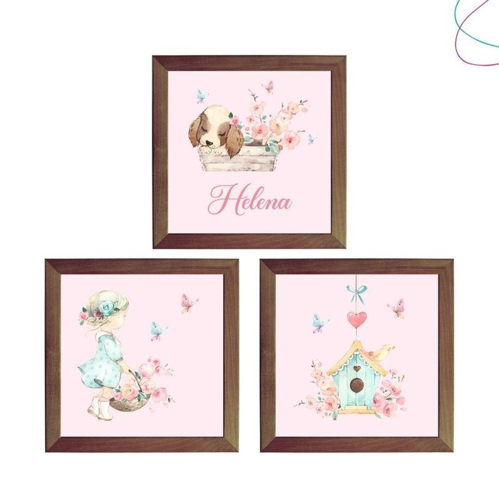 Quadro Decorativo Infantil Jardim Encantado Menina Aquarela Cor Da Armação:tabacoCom os nossos quadros o seu ambiente ganha cor e vida. Escolha o modelo que falta para deixar a sua decoração ainda mais bonita.