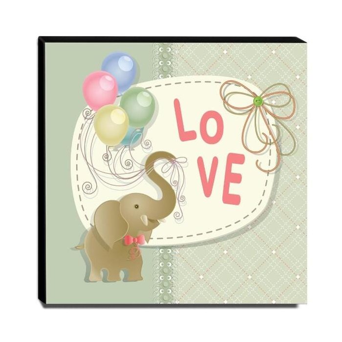 Quadro Infantil Love Elefante Canvas 30x30cm-INF94 Colorido