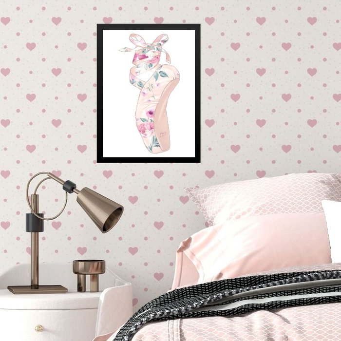 Quadro Infantil Menina Sapatilha de Balé 45x34cm - com Vidro:madeira Branca