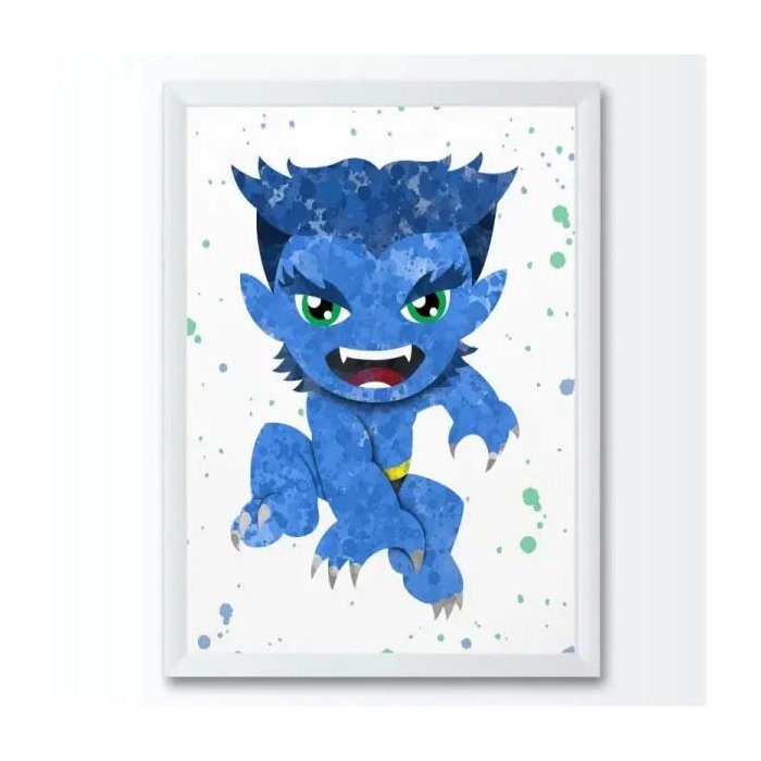 Quadro decorativo com moldura laqueada, Quadro infantil Monstro Azul X-Men.