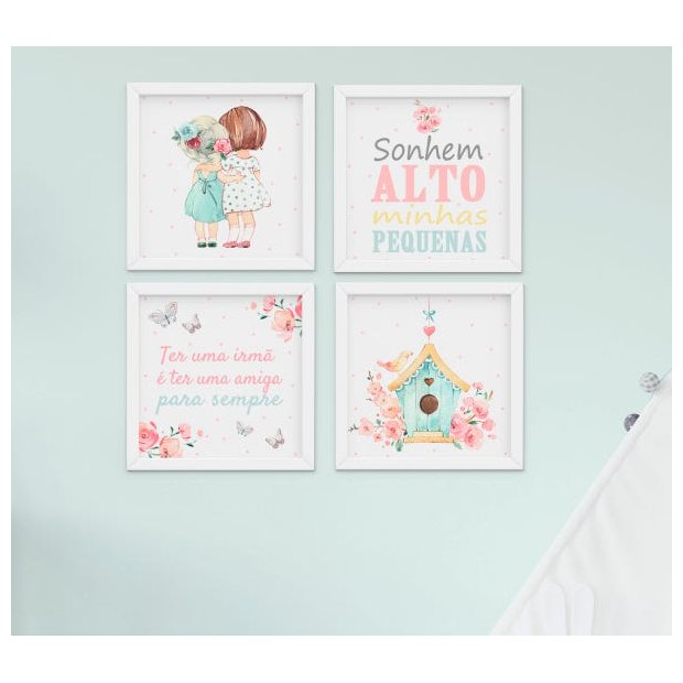Detalhes do ProdutoKit Quadro Infantil Menina Flores 4 Peças