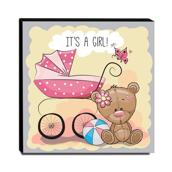 Quadro Infantil Ursinho It's a Girl! Canvas 30x30cm-Inf42 Colorido