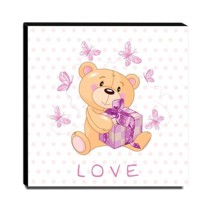 Quadro Infantil Ursinho Love Canvas 30x30cm-INF141 Colorido