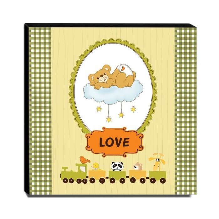 Quadro Infantil Ursinhos Trenzinho Canvas 30x30cm-INF78 Colorido