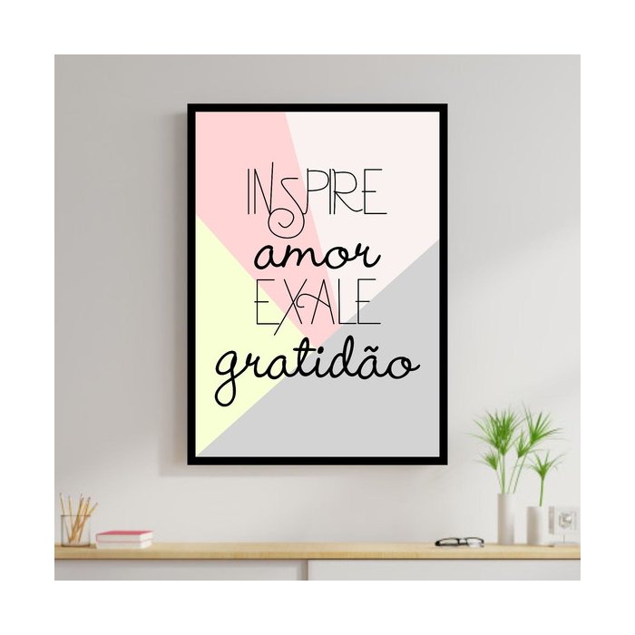 Quadro Inspire Amor, Exale Gratidão 24x18cm - com vidro:Madeira branca