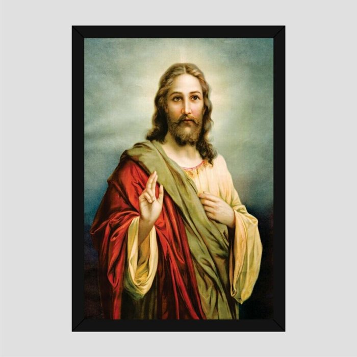Quadro Jesus Cristo Vinil Moldura Preta 30X20Cm