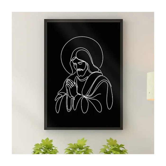 Quadro Jesus Moderno - One Line 45x34cm:moldura Preta