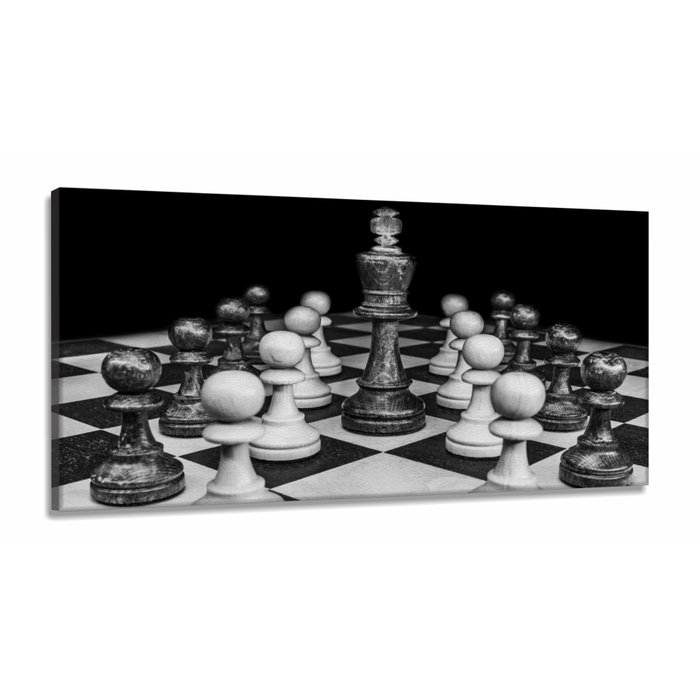 Quadro Jogo de Xadrez O Rei Arte Preto e Branco em Tecido Canvas 130x60 m1 Ilustrado