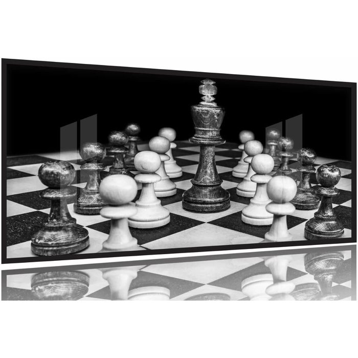 Quadro Jogo De Xadrez O Rei Arte Preto E Branco Mosaico 130x60 Moldura Preta 2x2 Ilustrado