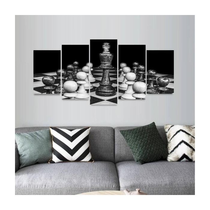 Quadro Jogo de Xadrez o Rei Arte Preto e Branco Mosaico