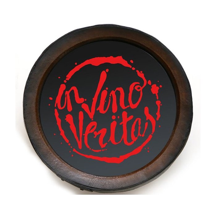 Com os dizeres: In Vino Veritas. É uma frase em Latin e a tradução é: A verdade é o vinho.