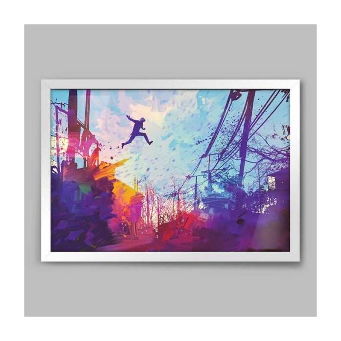 Quadro Le Parkour Ilustração Cidade - 45x30cm - Moldura Caixa Branco