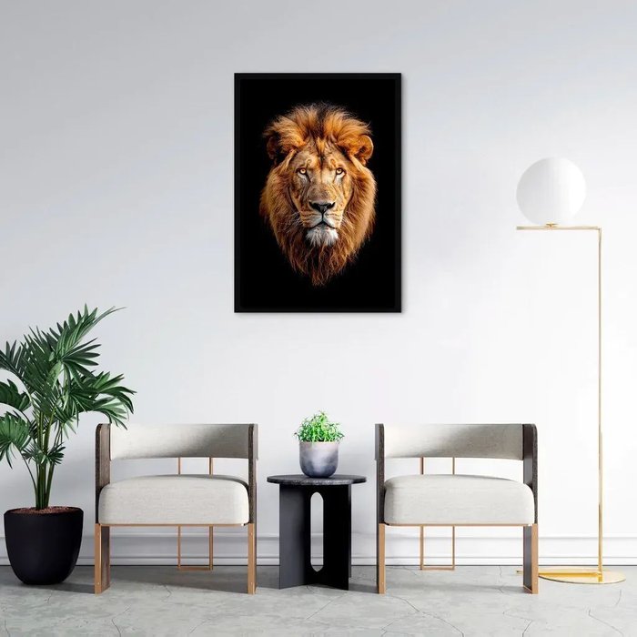 Quadro Leão de Judá 60x43 Caixa Preto Moldura Caixa, Preta