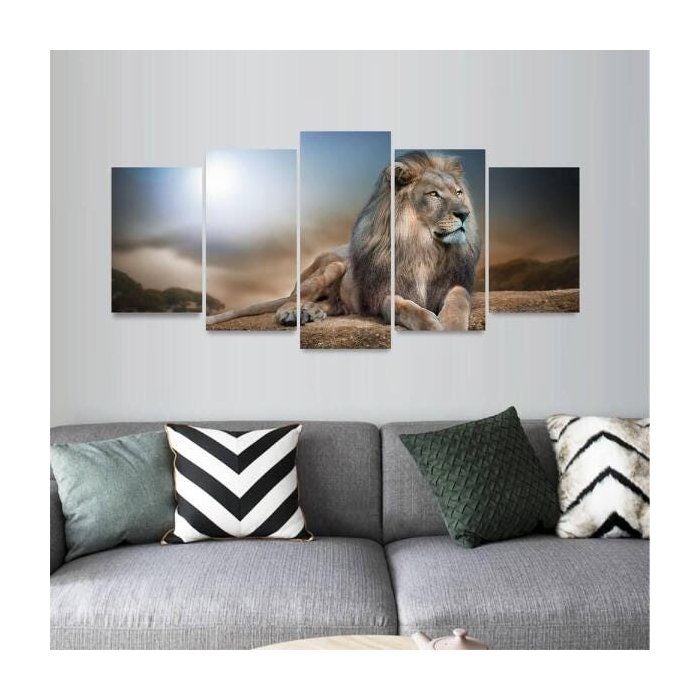 Quadro Leão De Judá Arte Para Sala Quarto Mosaico 5 Peças