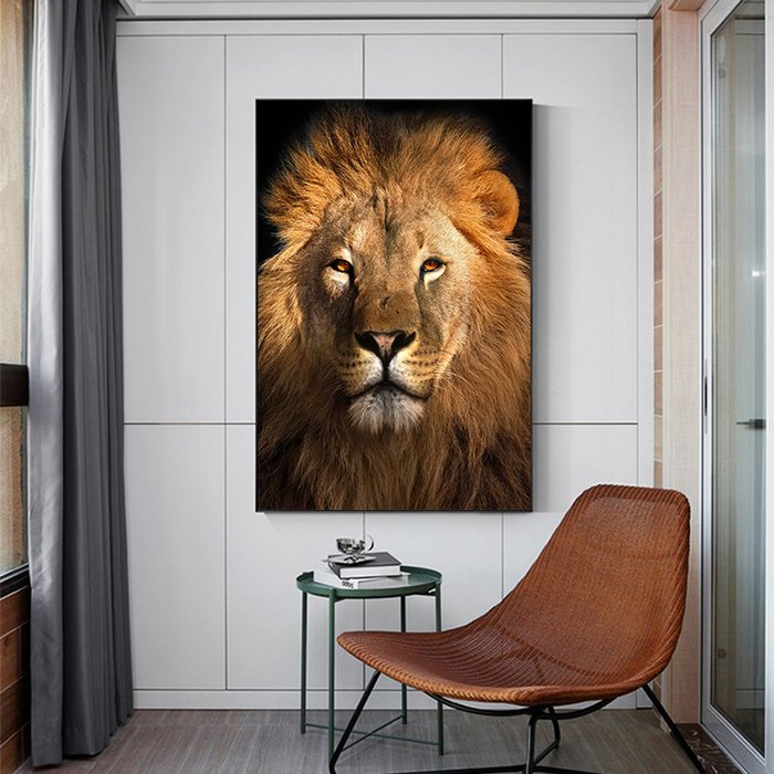 Quadro Leão Rei Retangular - Tela Única - 200 x 120 cm - Preta