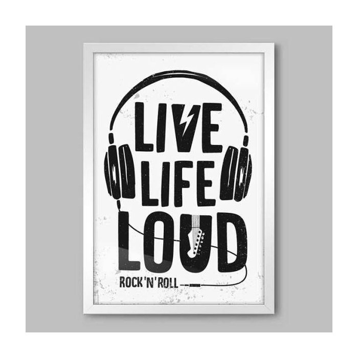 Quadro Live Life Loud - 60x40cm - Moldura Caixa Branco