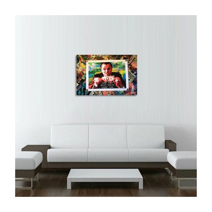 Quadro Lobo de Wall Street Hard Work 60x40 em Tecido